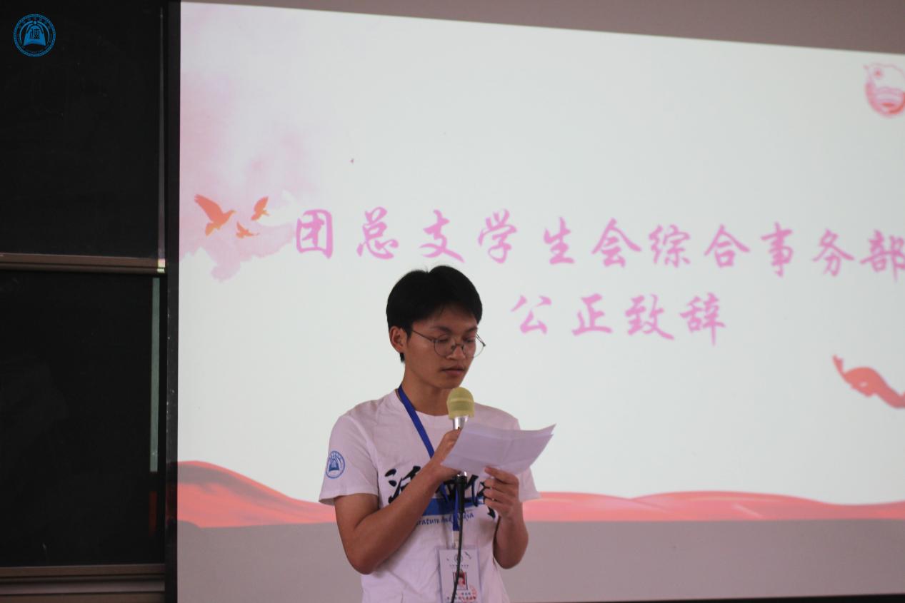 随后,威廉希尔williamhill中文学生会综合事务部部长黄南辉上台作评选程序的说明和公正词的宣读。本次评选大会将严格遵守党的政治纪律性和政治规矩,本着对共青团事业高度负责的态度,严肃认真地开展此次评选工作。