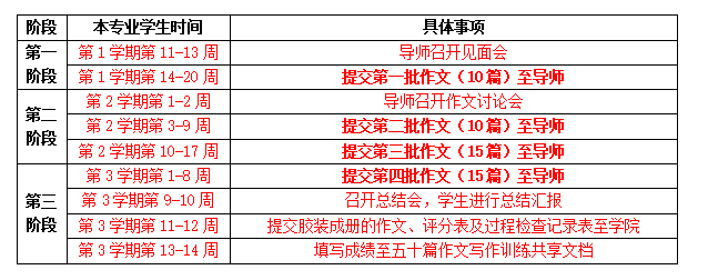 备注:导师可在每一阶段规定的时间内灵活安排召开见面会、提交作文等具体时间。