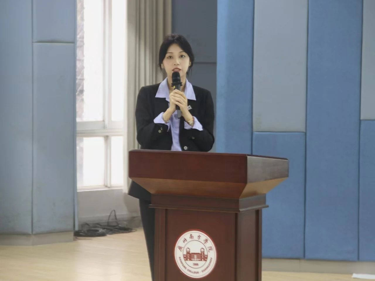 孙立院长致欢迎辞。他向来宾介绍了广州南方学院新闻学专业的历史和现状,认为该校新闻学专业长期以来重视应用型复合型媒体人才的培养,毕业生在媒体实务方面的能力突出,如今已成为广东地区各类型媒体不可忽视的力量,为媒体制作和内容生产提供了有力支持。但在传播学理论研究方面,仍存在明显不足。