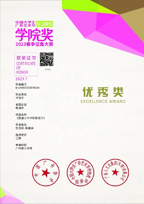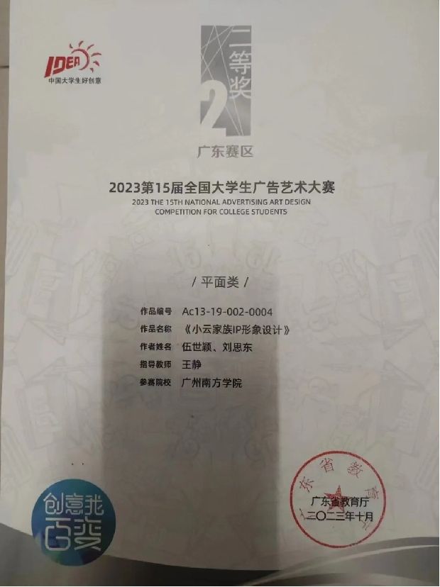 伍世颖,艺术设计与创意产业系2020级艺术设计学专业学生,曾获得校优秀学生奖学金一等奖两次,斩获2023年(新加坡)全球品牌策划大赛中国地区选拔赛一等奖、国青杯全国高校艺术设计作品大赛一等奖、全国大学生广告艺术大赛广东赛区二等奖、米兰设计周广东赛区三等奖、第11届未来设计师·全国高校数字艺术设计大赛三等奖、2022年中国包装创意设计大赛三等奖、中国大学生广告艺术节学院奖优秀类等三十余个奖项。