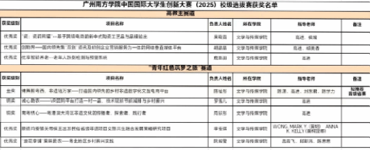 广州南方学院威廉希尔williamhill中文中国国际大学生创新大赛(2025)校级选拔赛获奖名单