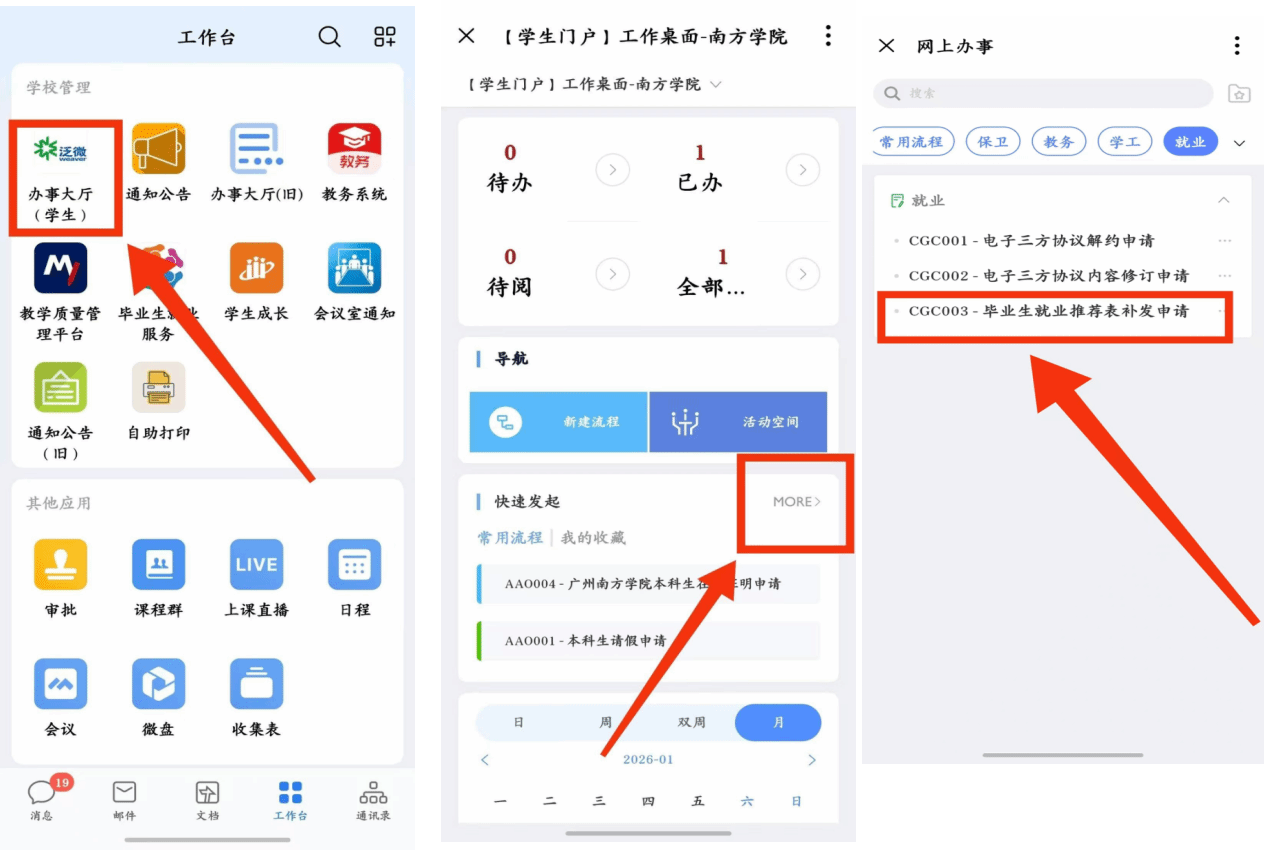 《毕业生就业推荐表补发申请》详细操作流程如下: