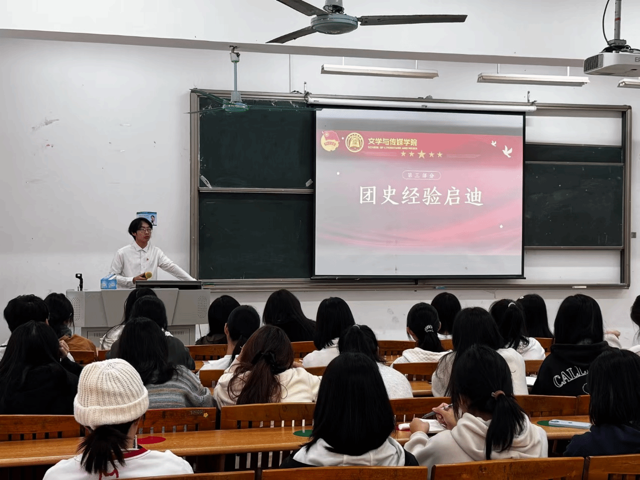 主讲人李沃谚同学首先带领同学们回顾了中国共青团的发展历程。从1919年5月至今,我们总能看到青年人坚定不移而又生生不息的身影:他们是五四爱国运动无畏的先锋,是积极投身于党领导革命的斗争者,是国家改革发展的创新力量......重温这段波澜壮阔的团史,入团积极分子们刻领悟到了先辈们的伟大,更加坚定了向中国共青团靠拢、学习的信念,明白了青年的使命与责任。