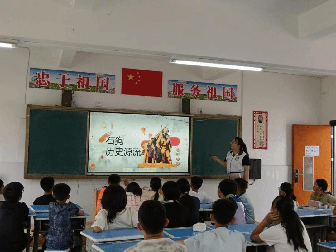 教员潘小曼正给学生讲授雷州石狗的历史渊源