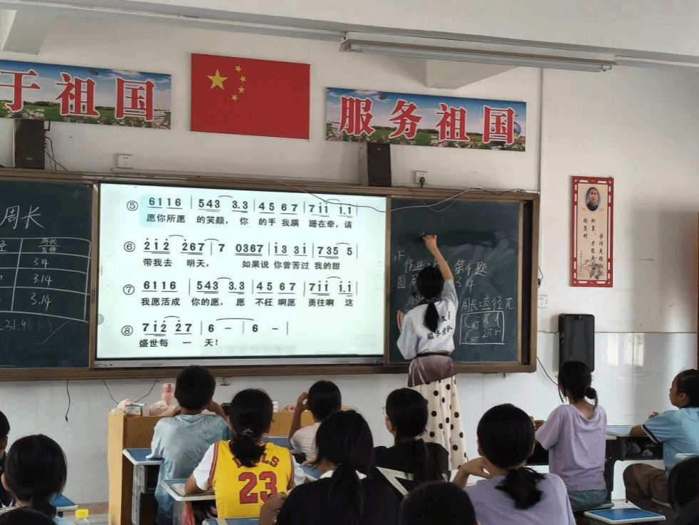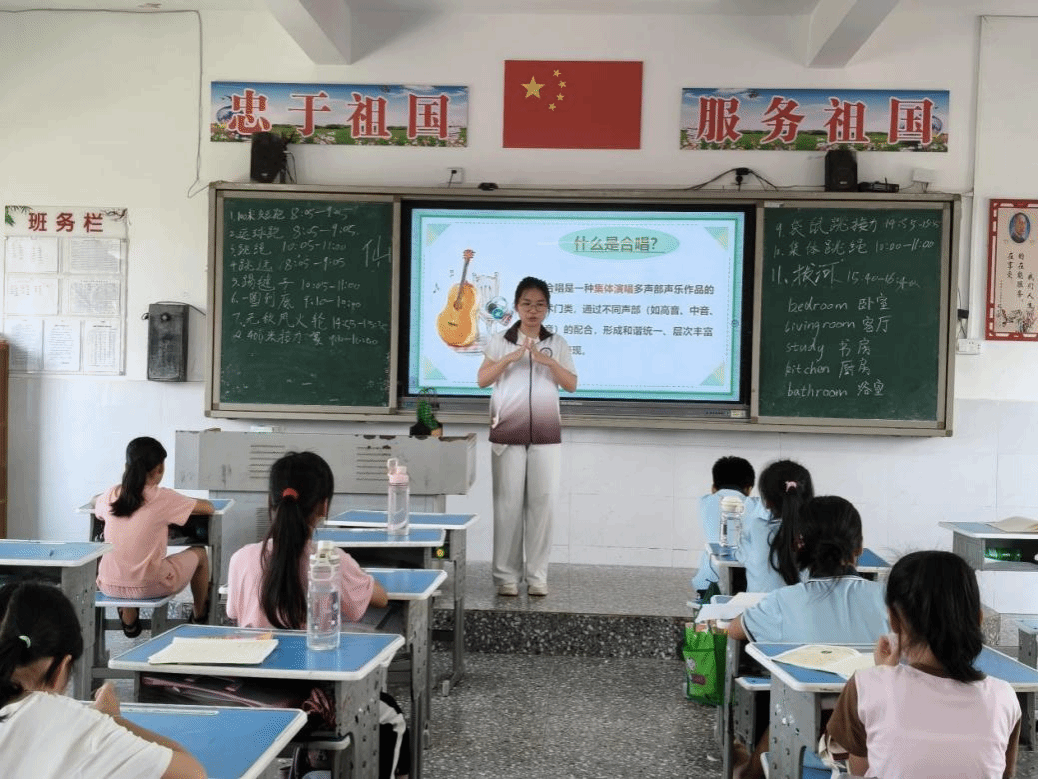 为纪念中国人民抗日战争暨世界反法西斯战争胜利80周年,卢晴教员与曹静雯教员选取《黄河大合唱》《我和我的祖国》等经典红色合唱作品开展教学。通过AI交互工具降低音乐学习门槛,激发乡村儿童对合唱艺术的兴趣,让他们在学习过程中感悟先辈的爱国情怀与坚韧精神,在歌声中铭记历史、传承红色精神、厚植爱国情怀。