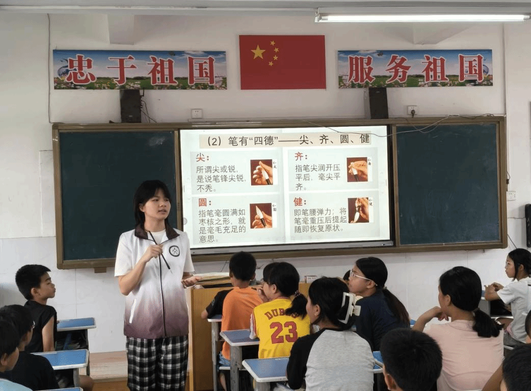 在教员们的精心备课与孩子们的朗朗书声中,半个月的时光转瞬即逝。语言文字服务团队的成员们均收获颇丰。指导教师刘勇君表示:“‘百千万工程’并非走过场,而是让大学生真正走进乡村、读懂中国。本次教学活动不仅为孩子们送去知识与欢乐,更让大学生在付出中体会到‘被需要’的价值,他们用青春微光汇聚成照亮乡村教育的暖流。”