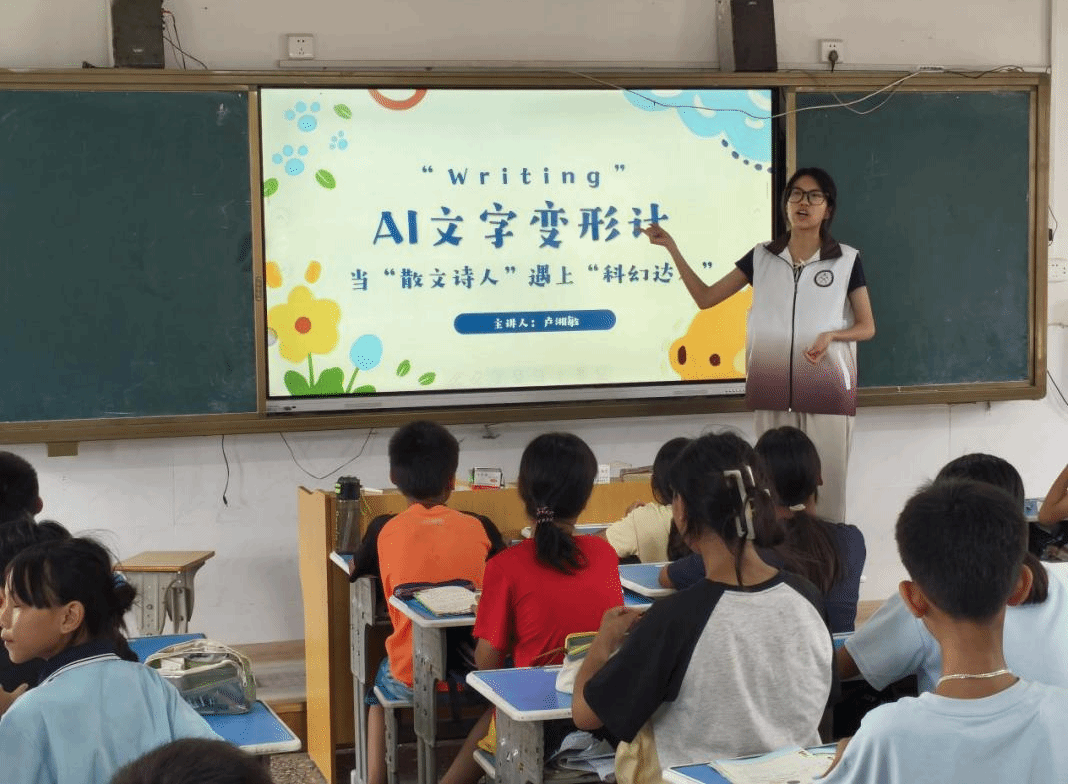 2025年7月6日至22日,广州南方学院威廉希尔williamhill中文语言文字服务团队以“智惠乡村·AI赋能乡村支教新模式”为主题,在湛江市雷州市唐家镇元奏村元奏小学开展了第四年的“传承优秀语言文化 推普助力乡村振兴”暑期教学实践活动。团队成员依托AI技术打造特色兴趣课堂,把普通话培训融入教学实践,通过兴趣引导与沉浸式教学模式,用语言文字唤醒孩子们对优秀传统文化的认同感,切实感受普通话表达的多重魅力,让孩子们在AI赋能的教学模式中培植下语言文化的种子,助力乡村文化育人成果的转化。