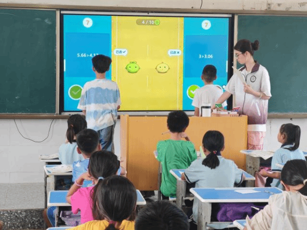 教员冯金怡正为三年级学生讲授数学课