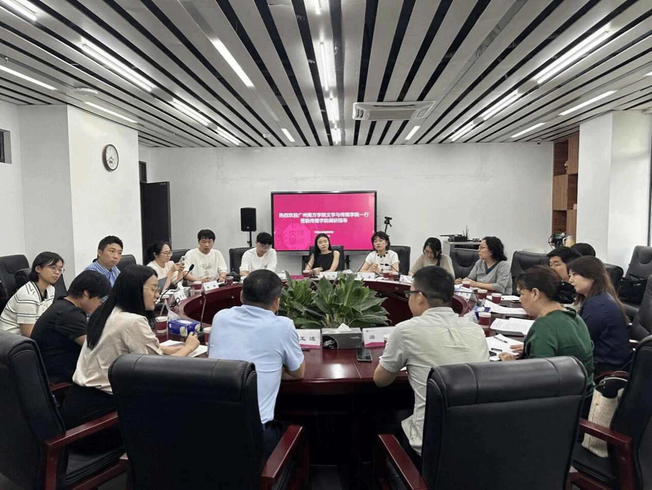 2025年5月7日下午,广州南方学院威廉希尔williamhill中文副院长游鸽博士率教师代表团赴深圳大学传播学院开展调研交流。双方围绕智能媒体时代新闻学、网络与新媒体专业的人才培养模式、课程改革及实践教学体系进行深入研讨,深圳大学传播学院副院长黄玉波及相关专业负责人参与交流。